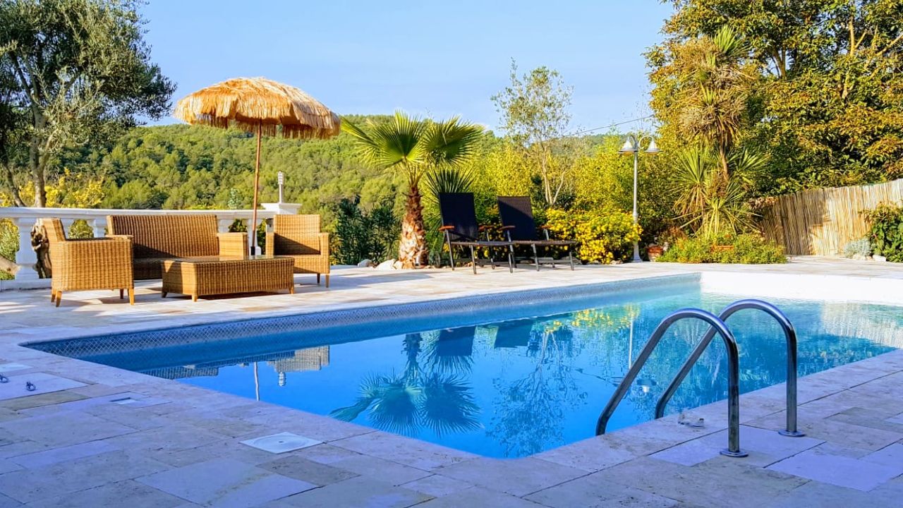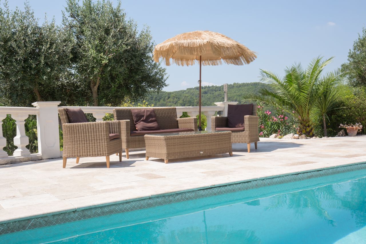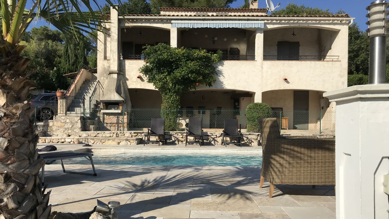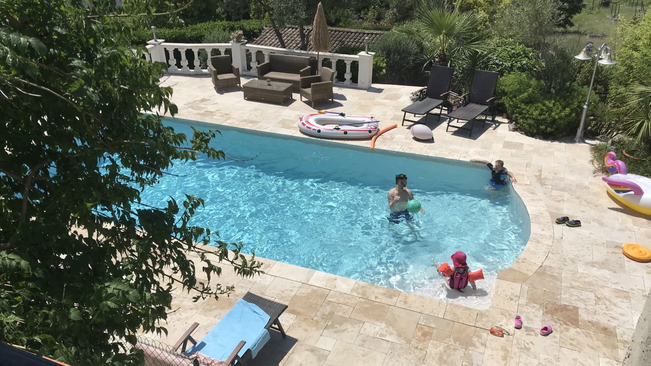 Die Südseite unseres Hauses: oben die Veranda, unten die Poolbar...
